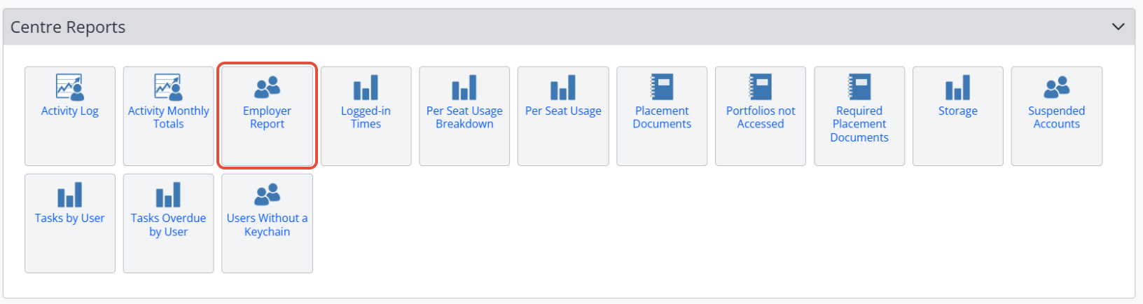 - Scroll to the Centre Reports section.