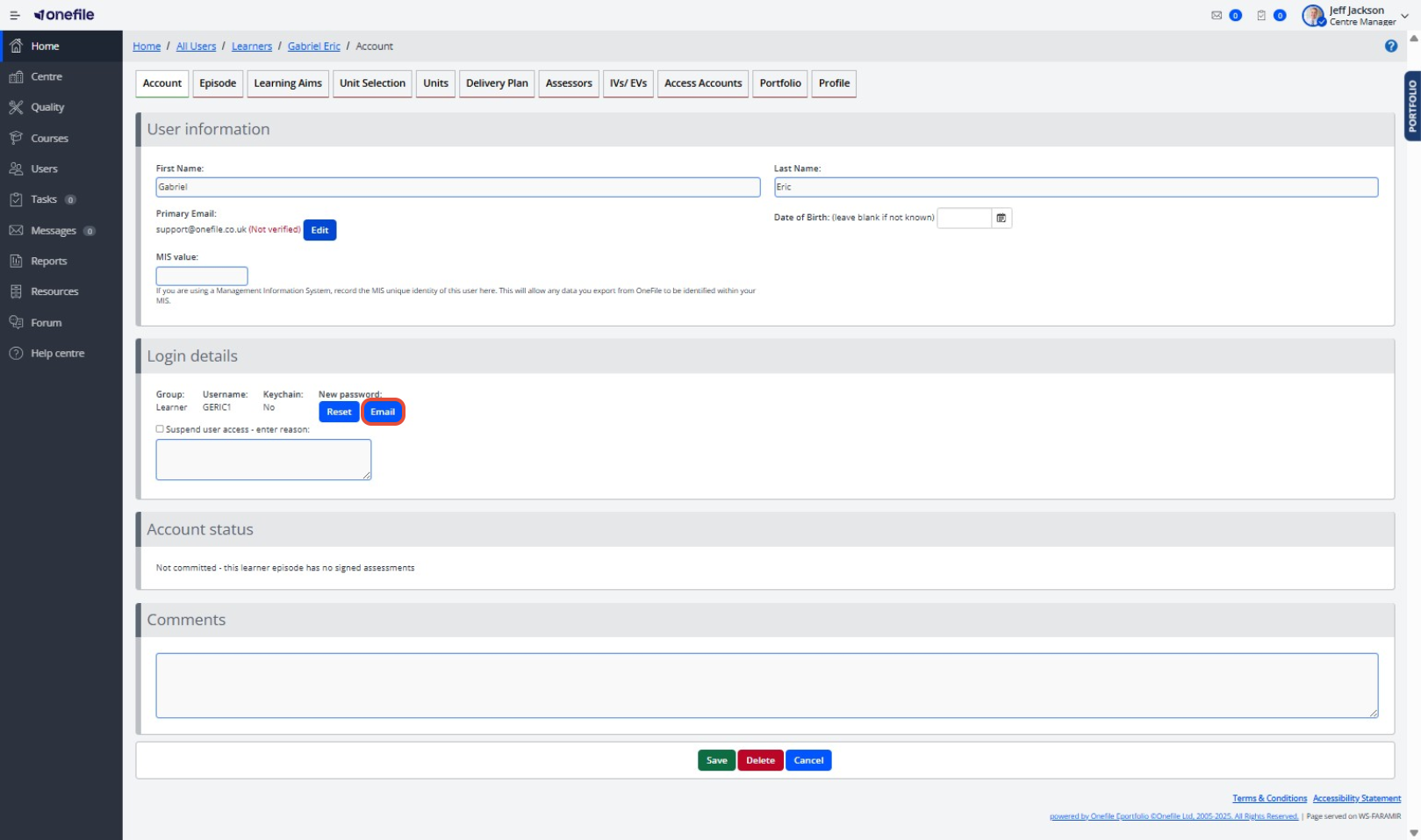 This will send a username and password to the newly added email address. When the user logs in using these credentials, they will be guided through the process of creating a new keychain.