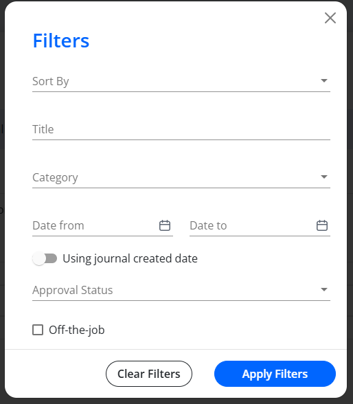 Learning Journal entries can be sorted to help users quickly review activity in the order most useful to them. You can sort entries by the Timesheet start date or the Journal entry date.